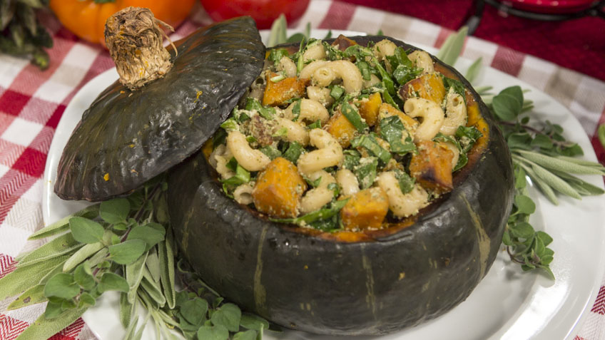 Place squash cubes on a baking sheet and spray with oil. Sprinkle with a little salt. Bake at 400 degrees, stirring occasionally for 30 – 40 minutes. Set aside.