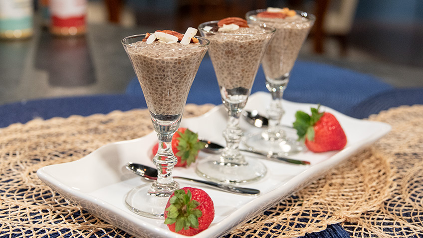 Add chia seeds and your milk of choice to a container.