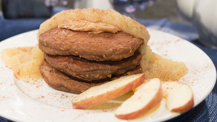 Cook on a pan at 325F or medium heat. (An electronic fry pan has the temperature gauges on it). Serve with peanut butter and applesauce.