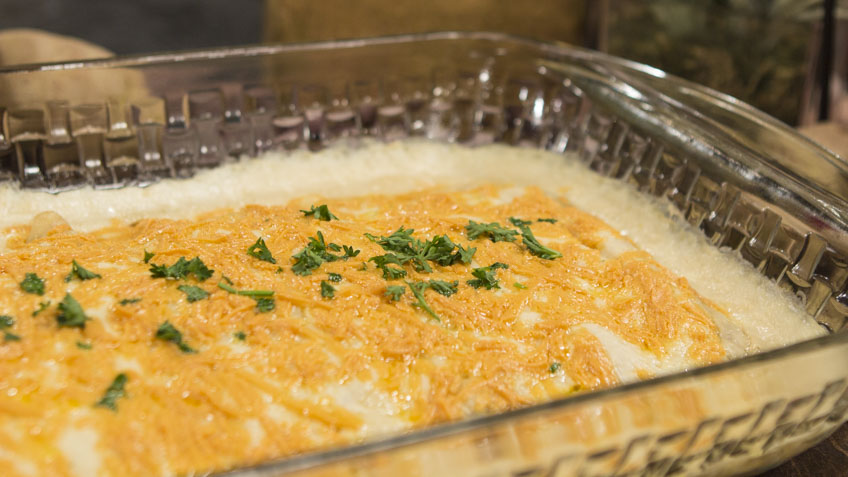 Spoon remaining gravy over the top and sprinkle with cheese. Bake at 375 degrees until hot and bubbly.