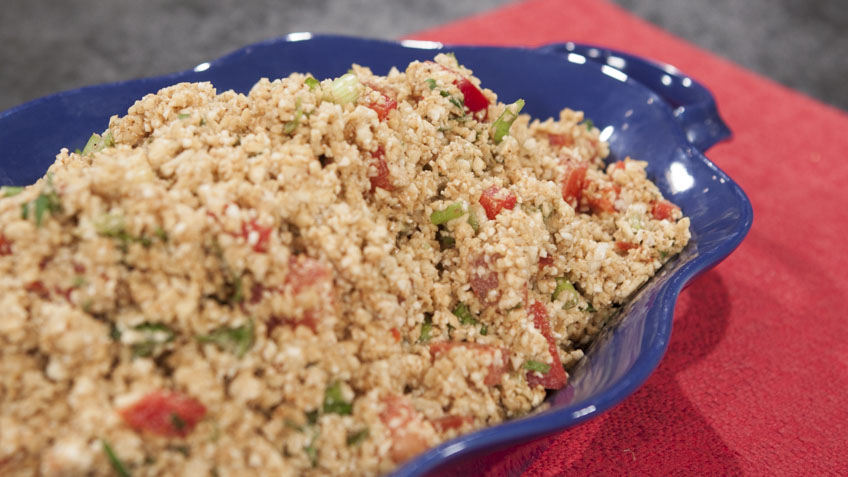 Place cauliflower into food processor and pulse until pieces are about the size of a grain of rice.