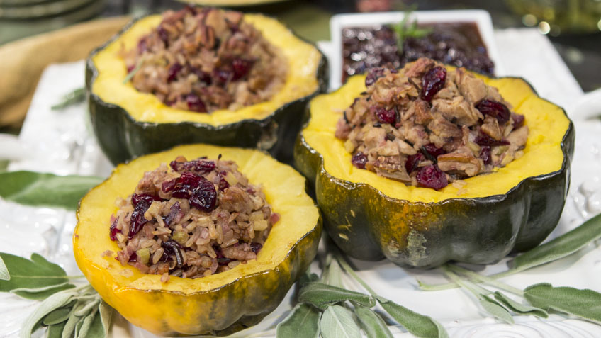 Remove from oven and fill with the rice mixture. Return to oven for 10 minutes. Remove and place on individual serving plates.
