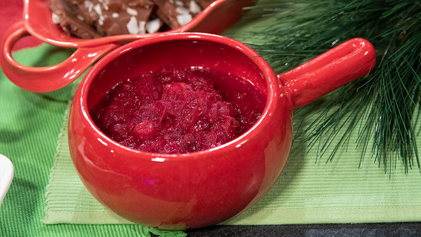 Simmer for 10 minutes until cranberries burst and mixture thickens.